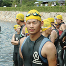 トライアスロンは、水泳、自転車、マラソンの3種目を一度に続けて行うスポーツ!ウエットスーツに身を包み、コースロープなどない大海原を泳ぎだし、 エアロポジションを保ちながらトライアスロンバイクで疾走する。そして、自分の持てる限りの力をふり絞り走りきる。 するとそこには、頑張った人にだけに与えられる感動のゴールが待っています。