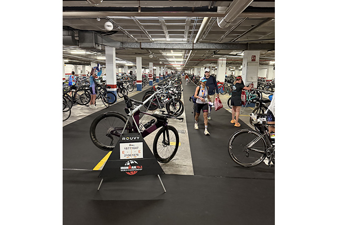 Ironamanレースは、バイク、ラングッズを前日にセットするのが一般的です。今回、トランジションがややこしく、T1、T2の帰ってくる場所が違いました。T1はスイム上がってからですぐで分かりやすかったですが、T2はなんと地下駐車場の中に帰ってくるらしく、どこにあるか迷いました。スタッフに聞きながら場所を特定。バイクバックをT1、ランバックをT2、それぞれ離れた場所にセットしました。これで後は当日の用意(スイム用品、ボトル、アンクルバンド)をもっていけば準備完了です。