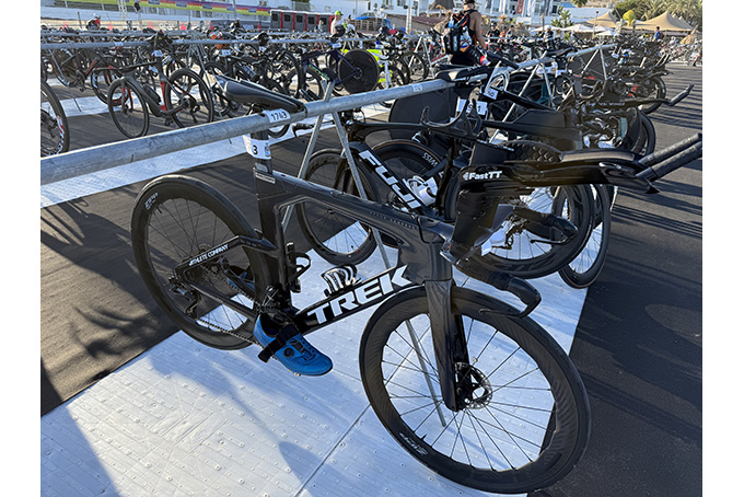 後で調べると、なんと男性で3332名、女性で2237名エントリーしていたそうです。受付を完了し、記念バックやグッズをゲットすることができ、テンションが上がります!受付後は、Ironman Storeや最新トライアスロングッズが展示されていましたので、ぶらぶら見ながら楽しんでいました!