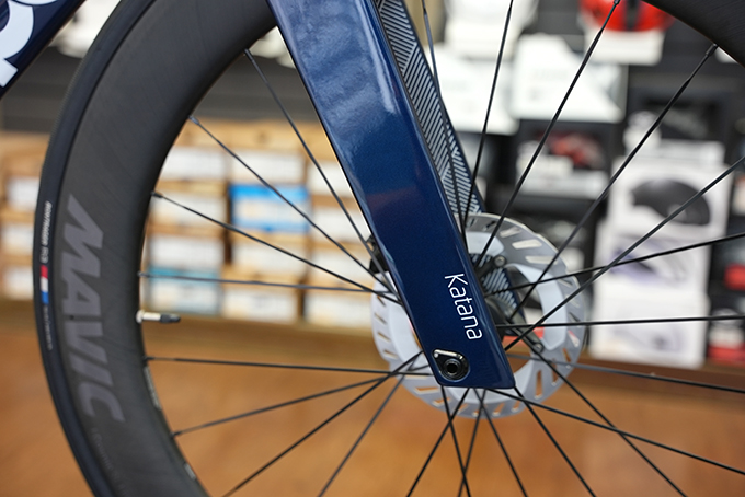 KATANAは、ヘッド(ハンドル周り)の剛性が高められ、前荷重になるエアロポジションでもバイクが安定して走行します。