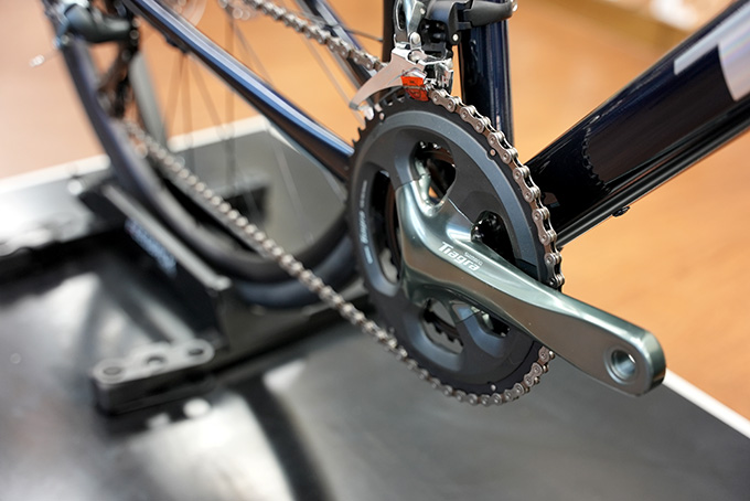 大会からスポーツサイクリングまで対応するパーツグレード、シマノTiagura を搭載しています。前2段、後ろ10段の20段変速でギア比の幅が広く、平坦から登りまで対応します。変速性能、耐久性、操作性も良く、長期間ご使用頂けます。