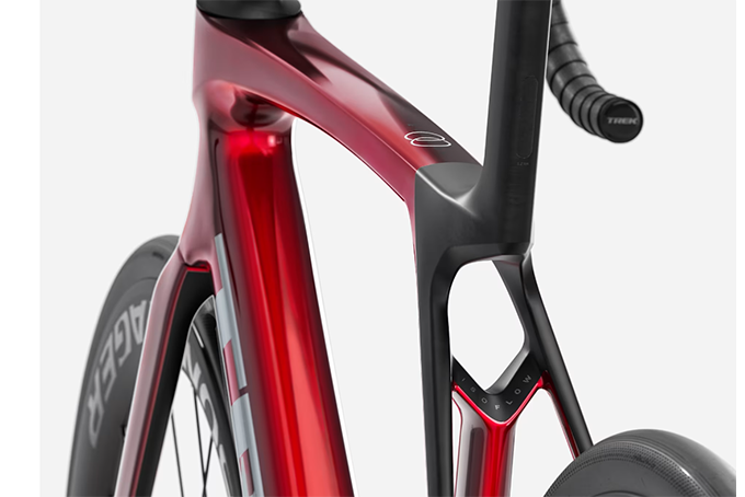 Madone Gen 8の最新IsoFlowテクノロジーは、従来よりもさらに軽く、垂直方向のコンプライアンスが最大80%向上。路面振動を巧みに吸収するので、乗り心地が良く、身体への負担を軽減します。また、整流効果も発揮し、空力性能が向上します。