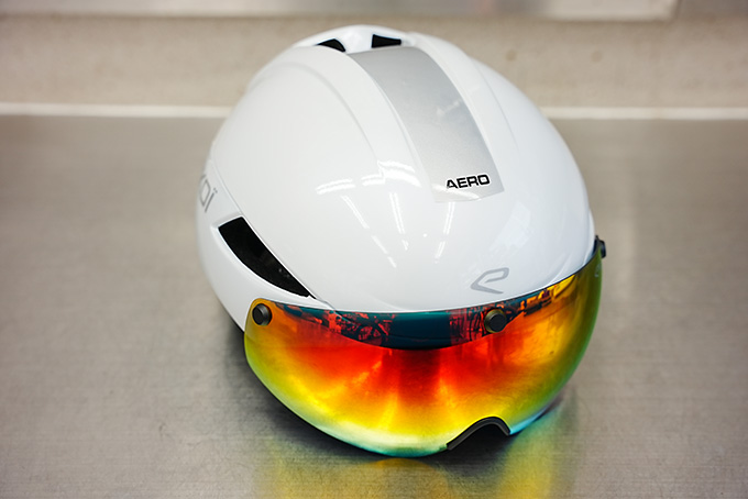 マグネット式バイザーを搭載した軽量エアロヘルメット。