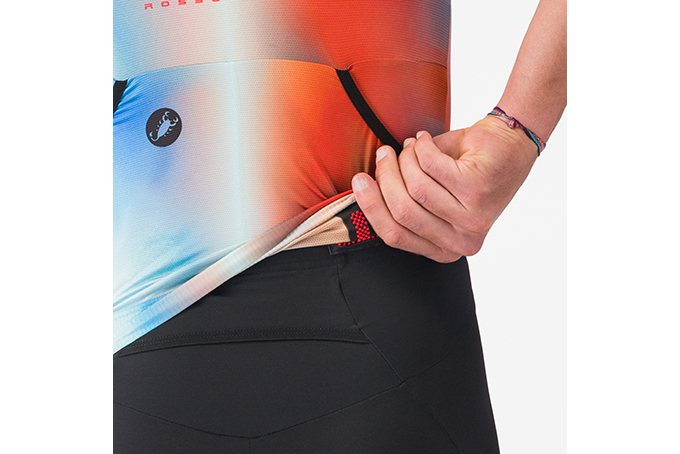 ウェア後部にバックポケットを左右2つ搭載しています。取り出しやすく飛び出しにくいポケット形状で、バイク、ランニングで必要なジェル等を携帯できます。